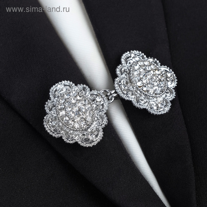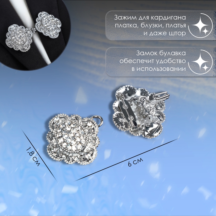 Зажим для кардигана «Ажур», цвет белый в серебре