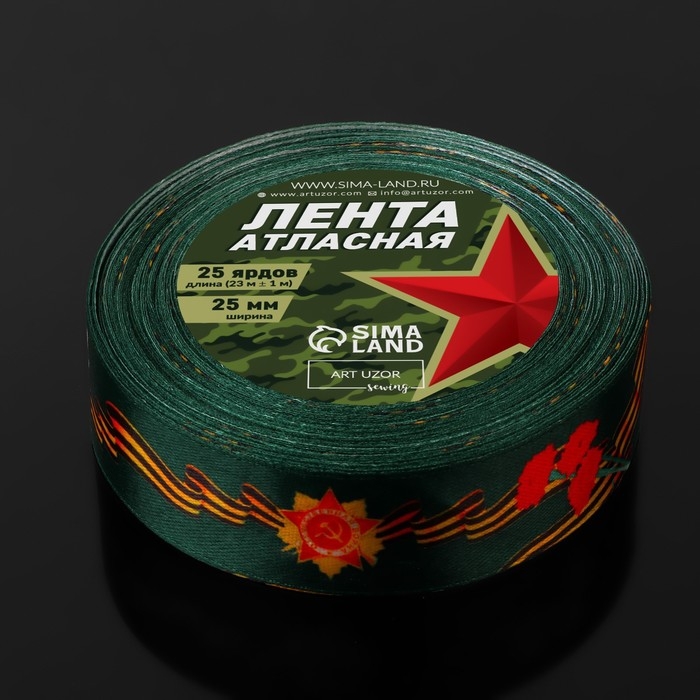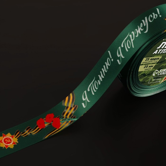 Лента атласная «Я помню! Я горжусь!», 25 мм × 23 ± 1 м, цвет зелёный