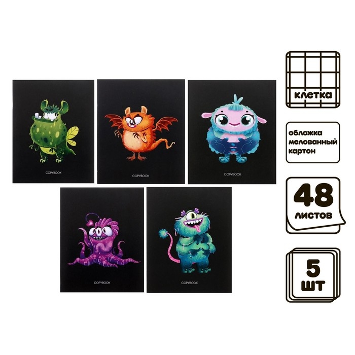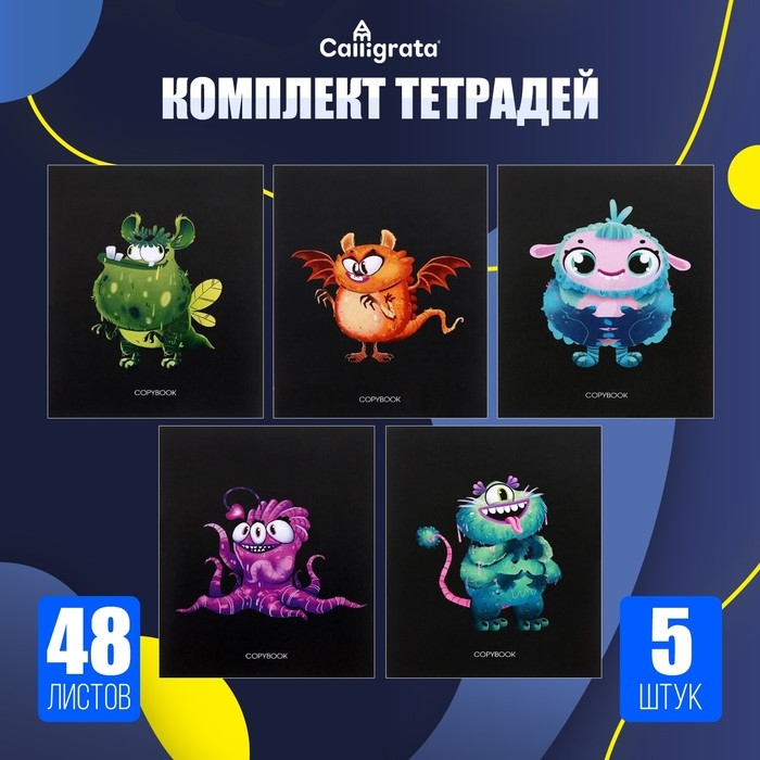 Комплект тетрадей из 5 штук, 48 листов в клетку Calligrata "Инопланетные друзья", обложка мелованный картон, блок офсет