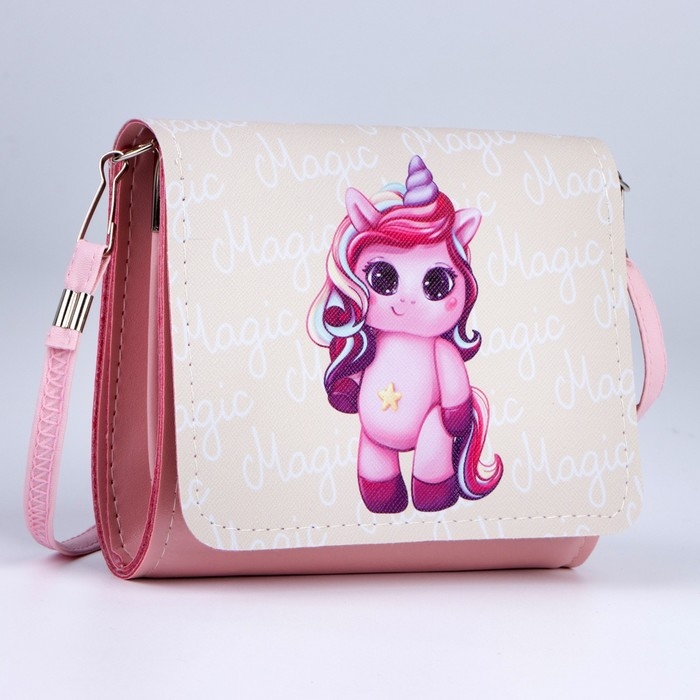 Сумка детская Единорог на клапане, цвет розовый