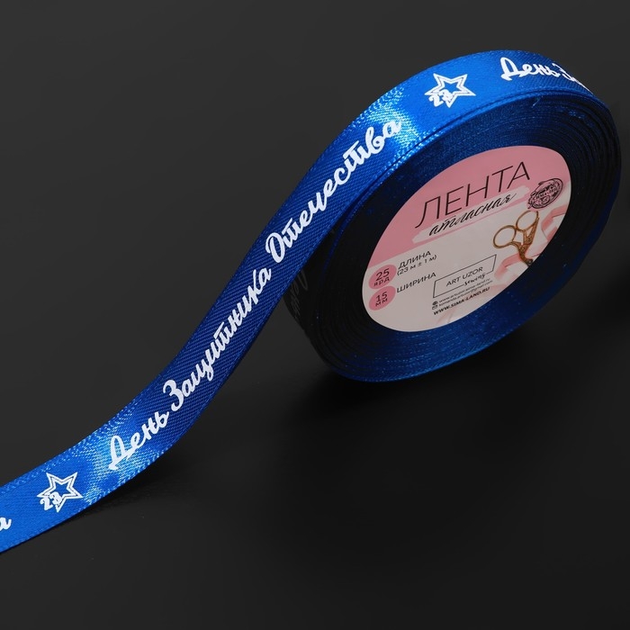 Лента атласная «День защитника Отечества», 15 мм × 23 ± 1 м, цвет синий