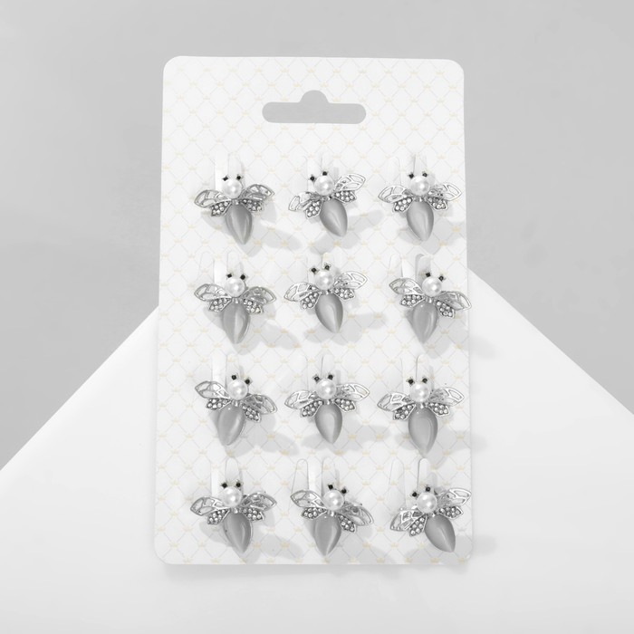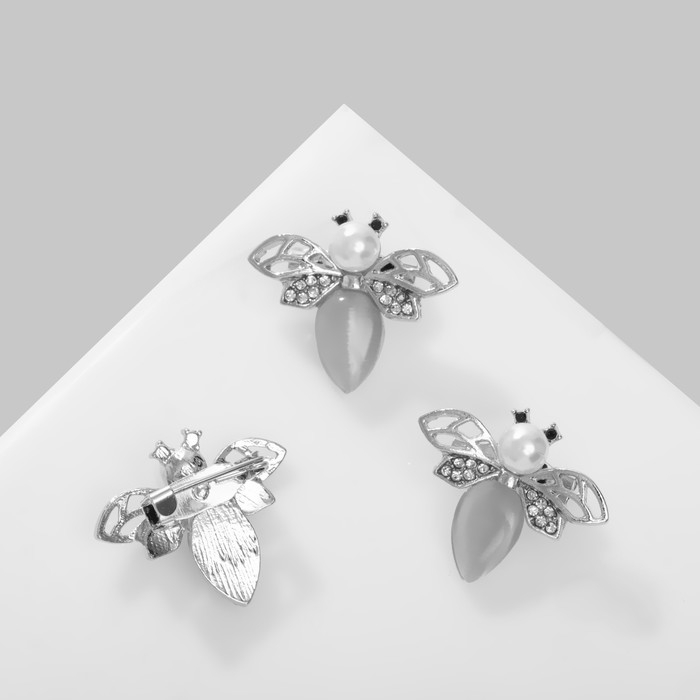 Брошь «Пчела» с ажурными крыльями, цвет белый в серебре (неделимая фасовка 12 шт., цена за шт.)