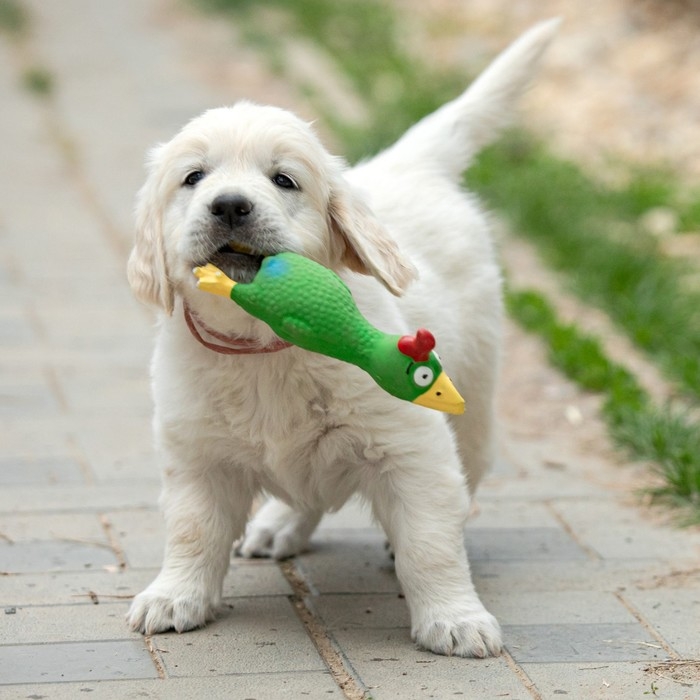 Игрушка пищащая помогает собаке снять стресс, если хозяина нет дома, массирует десна, а также способствует формированию правильного поведения у собаки.