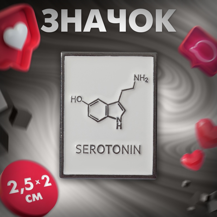 Значок «Молекулы» серотонин, цвет белый в серебре