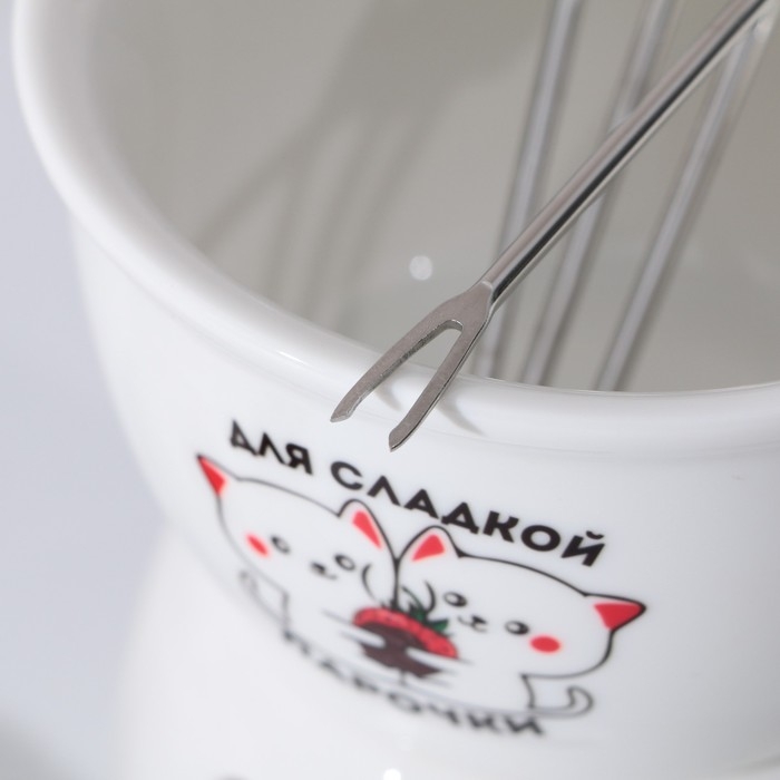 Фондюшница керамическая «Для сладкой парочки», 350 мл, цвет белый