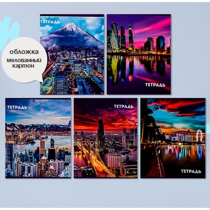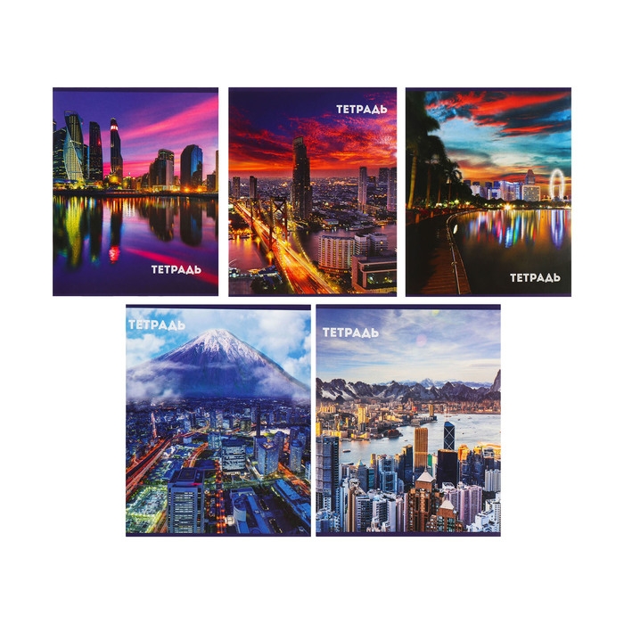 Комплект тетрадей из 5 штук, 36 листов в клетку Calligrata "Города", обложка мелованный картон, блок офсет