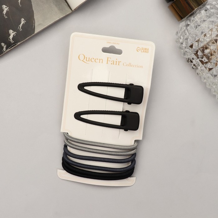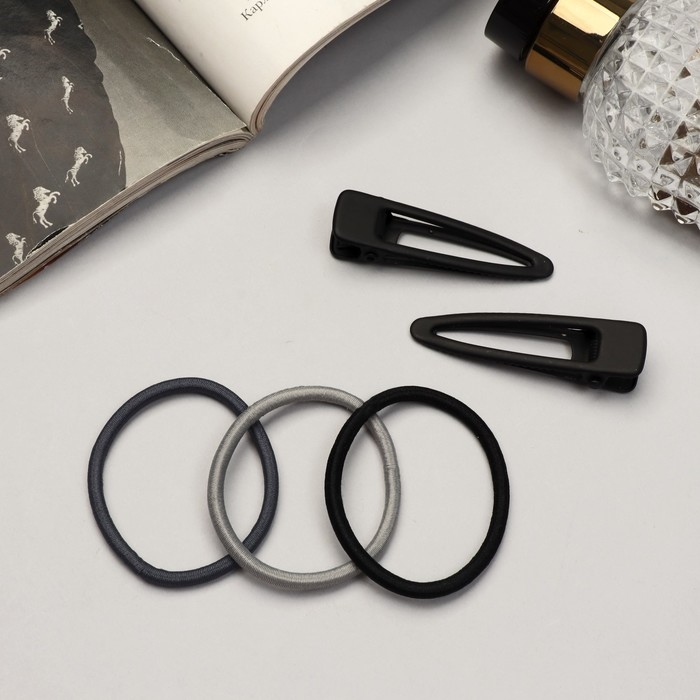 Набор для волос "Лиора" (6 резинок, 2 невидимки 5 см) классика, чёрно-серый