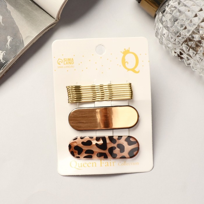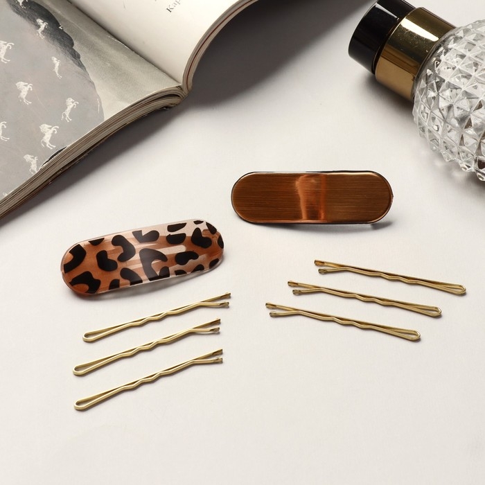 Невидимка для волос "Герти" (набор 10 шт) лео, 5 см, золото