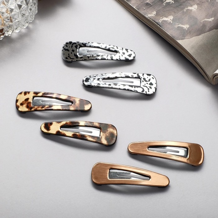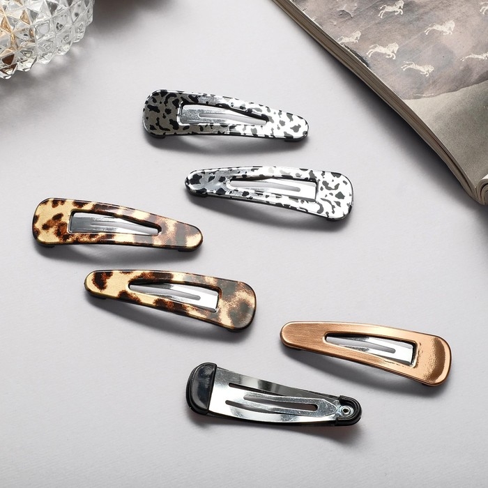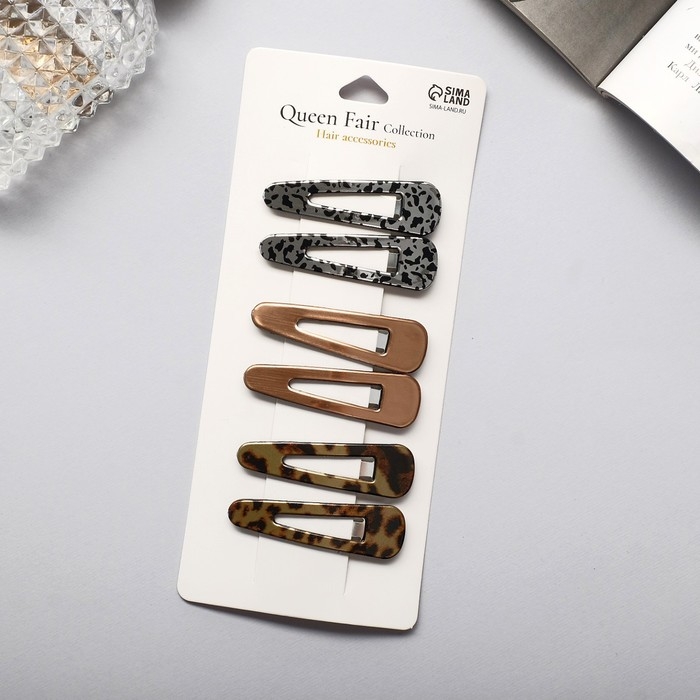 Невидимка для волос "Беатрис" (набор 6 шт) лео, 5 см, золото