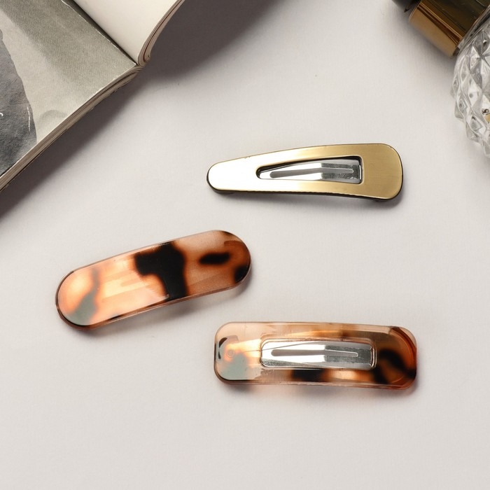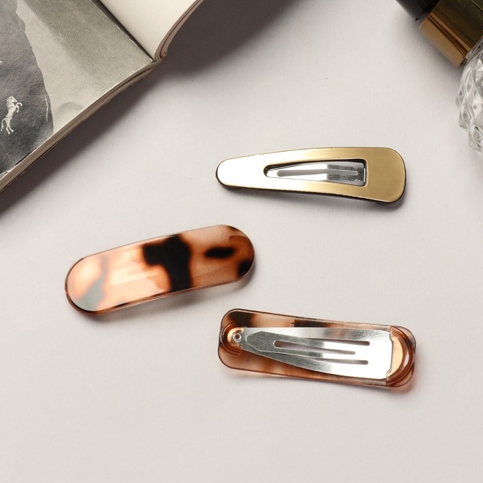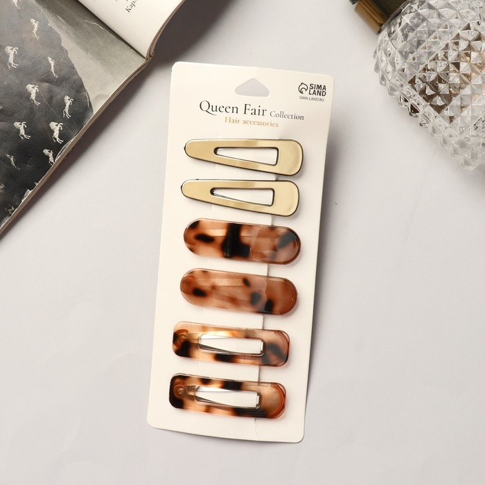 Невидимка для волос "Беатрис" (набор 6 шт) пятнышки люкс, 5 см, золотисто-коричневый