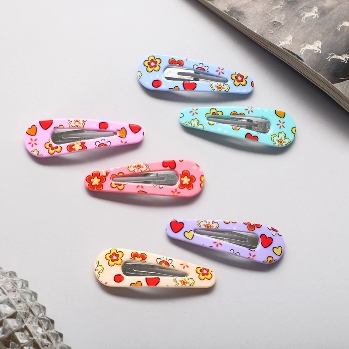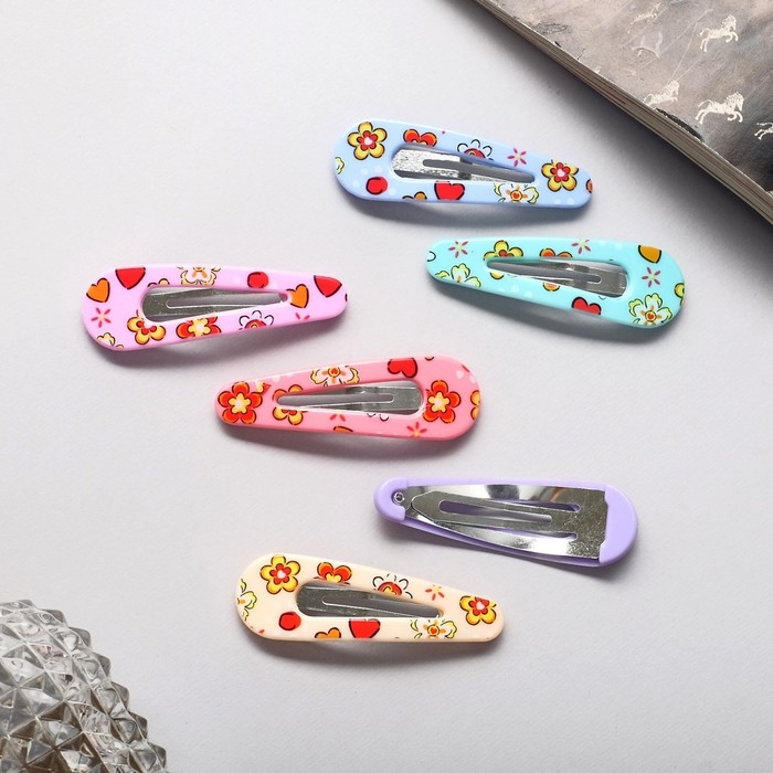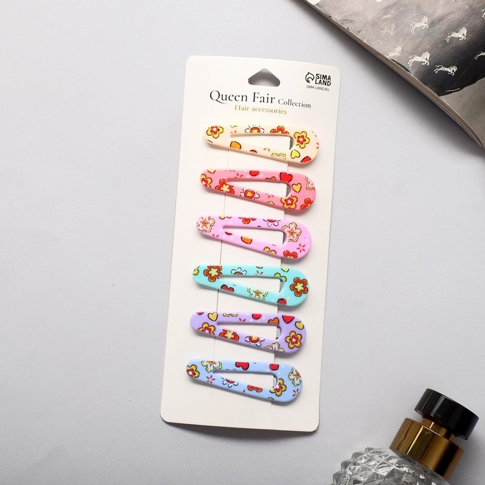 Невидимка для волос "Беатрис" (набор 6 шт) ромашки, 5 см, микс