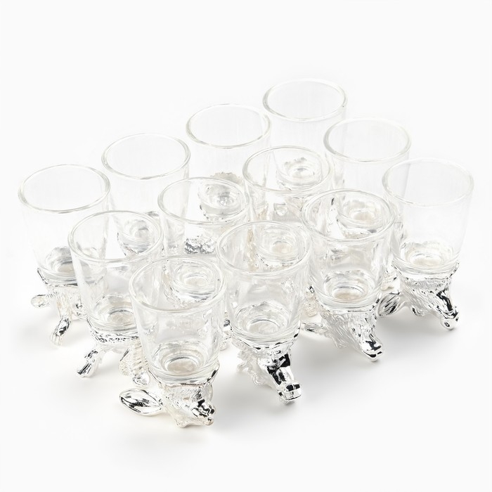 Набор стопок-перевертышей высокого качества с головами животных — оригинальный подарок для охотника, а также будет незаменим на большом дружеском застолье или на охотничьем привале.