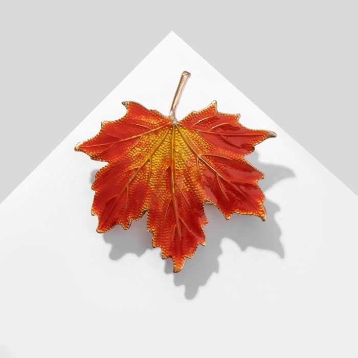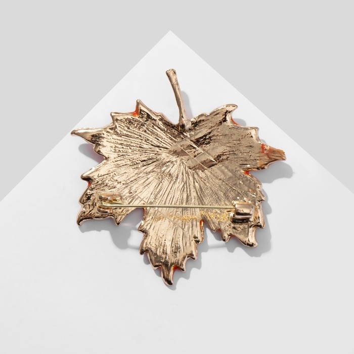 Брошь «Лист» осенняя пора, цвет оранжево-жёлтый в золоте