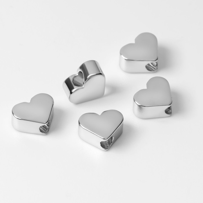 Бусина-разделитель родированная «Сердечко», 6×6 мм, d(вн.)=2мм, цвет серебро