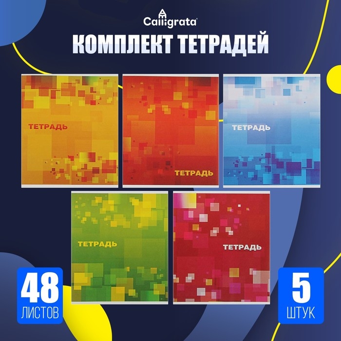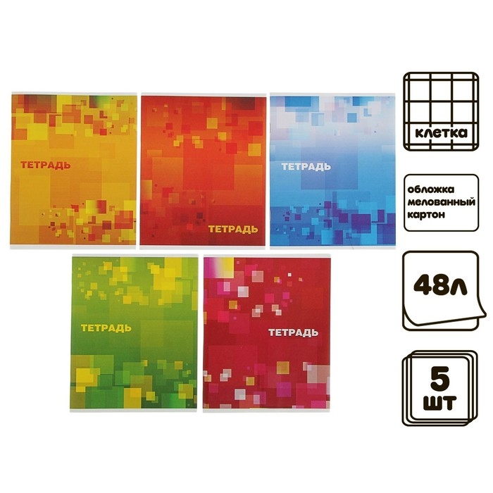 Комплект тетрадей из 5 штук, 4 уникальных и одна повторяющаяся.