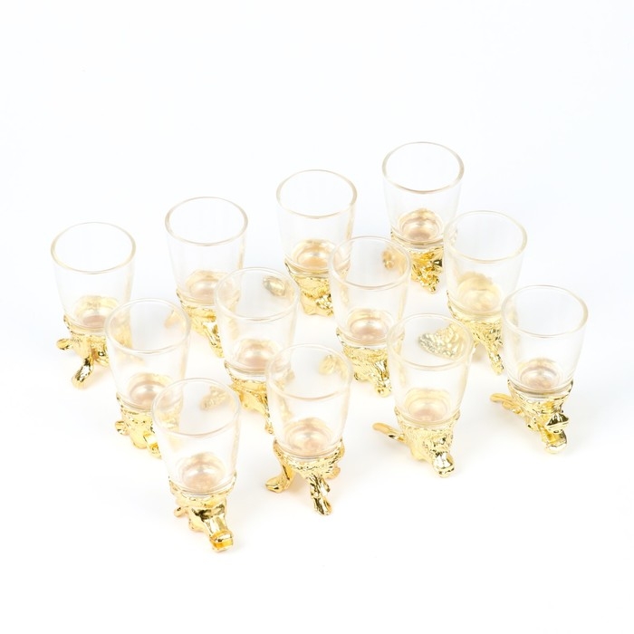 Подарочный набор рюмок-перевёртышей на 12 персон, с графином 400 мл, рюмка 30 мл, золото