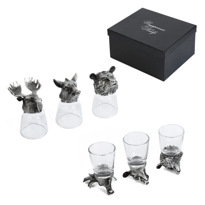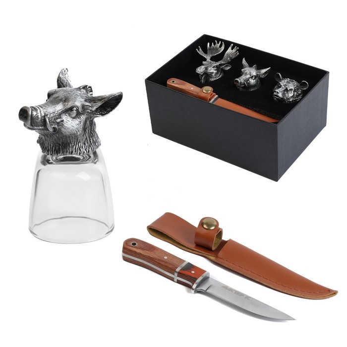 Подарочный набор рюмок-перевёртышей "Настоящему мужчине", на 3 персоны, рюмка 50 мл, нож