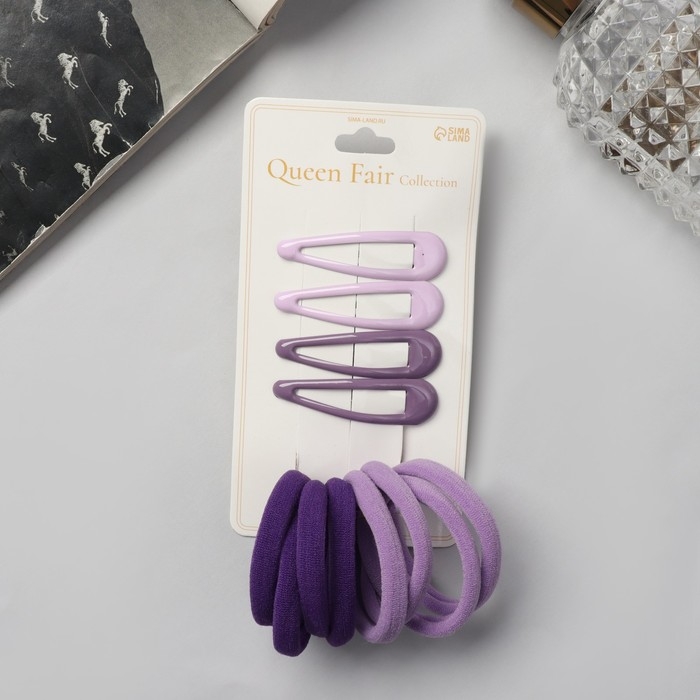 Набор для волос "Мира" (4 невидимки-5 см, 8 резинок-3,5 см) сиреневый