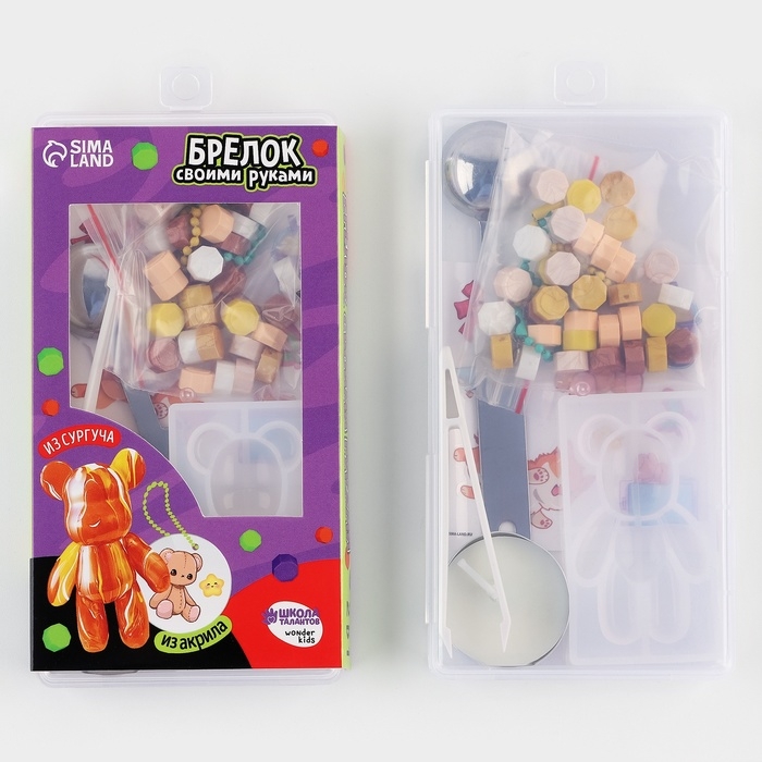 Этот набор не только позволит вашему ребенку проявить свою креативность, но и научит его новым техникам и работе с новыми материалами. Сургуч- это окрашенная плавкая смесь, состоящая из твердых смол. Его нужно расплавить над свечой и залить в молд, чтобы получить яркий брелок.