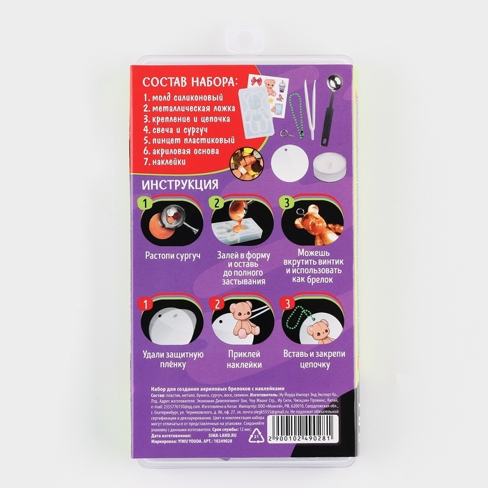 Набор для создания акриловых брелоков с наклейками и фигуркой из сургуча