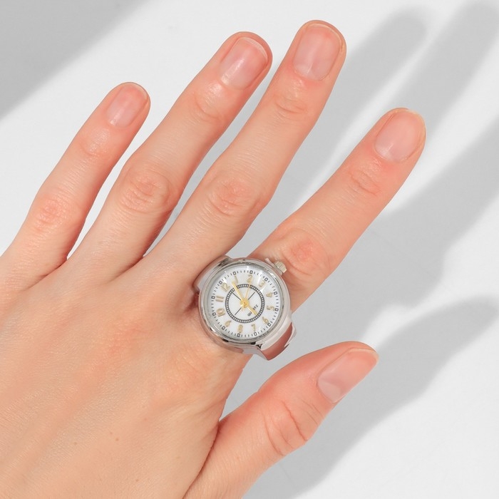 Кольцо «Время» часы круг, цвет серебряно-золотой