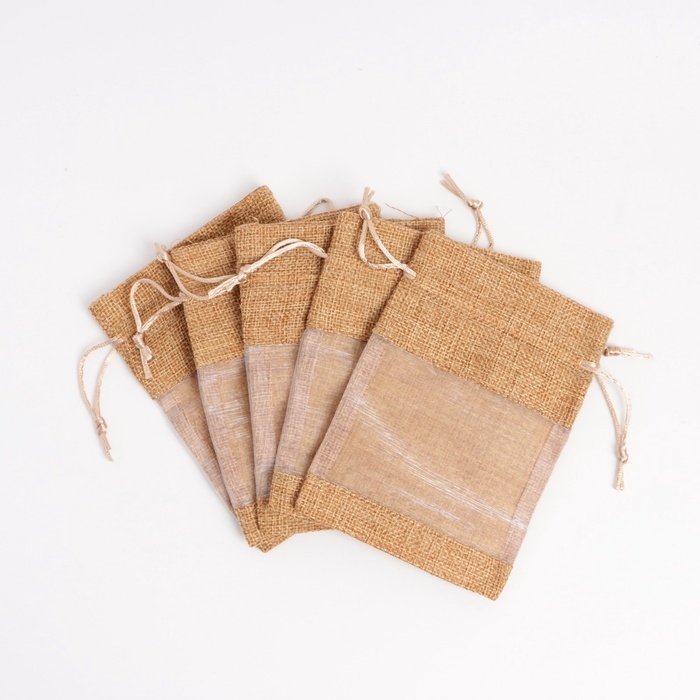 Льняной мешочек для хранения украшений, подарков, трав, 10 х 14 см, набор из 5 штук