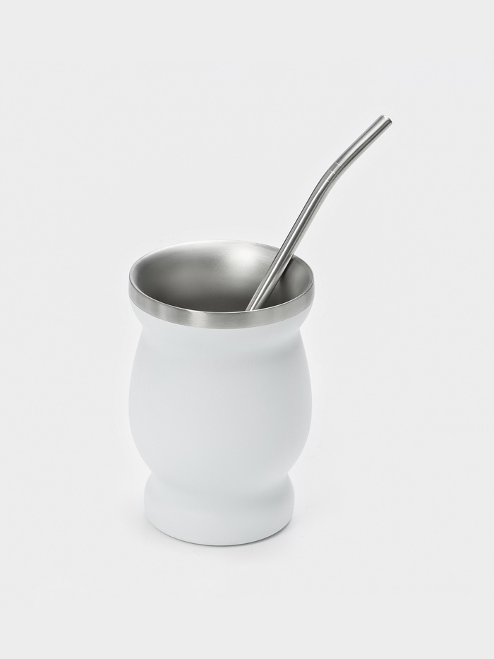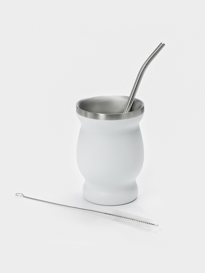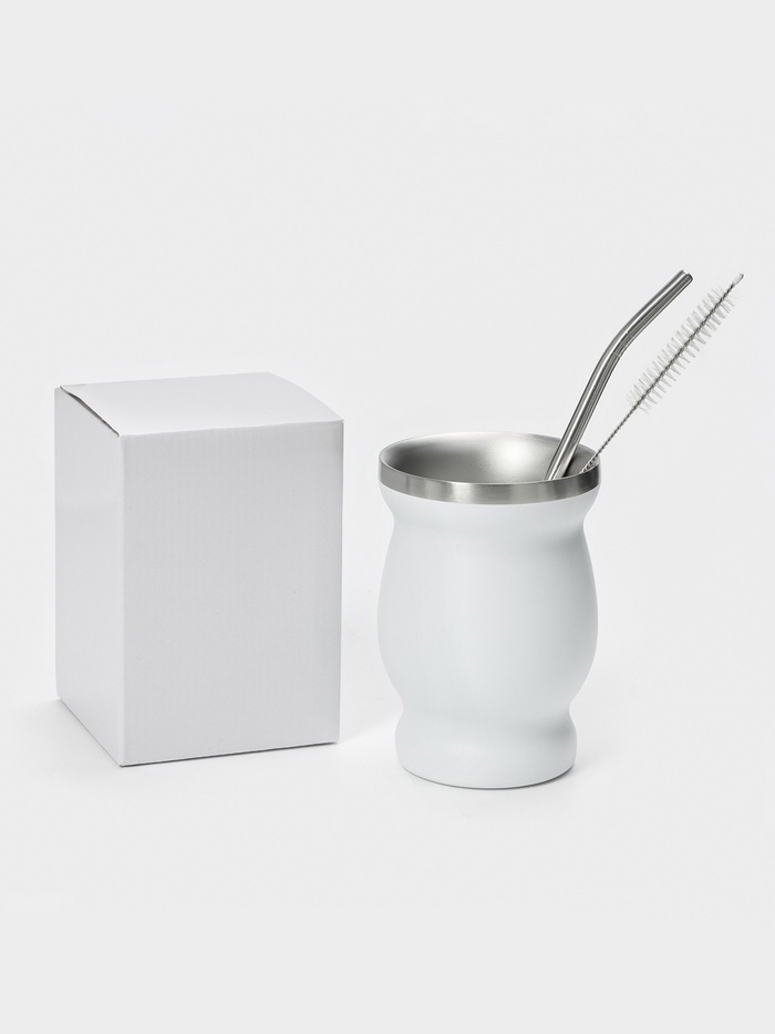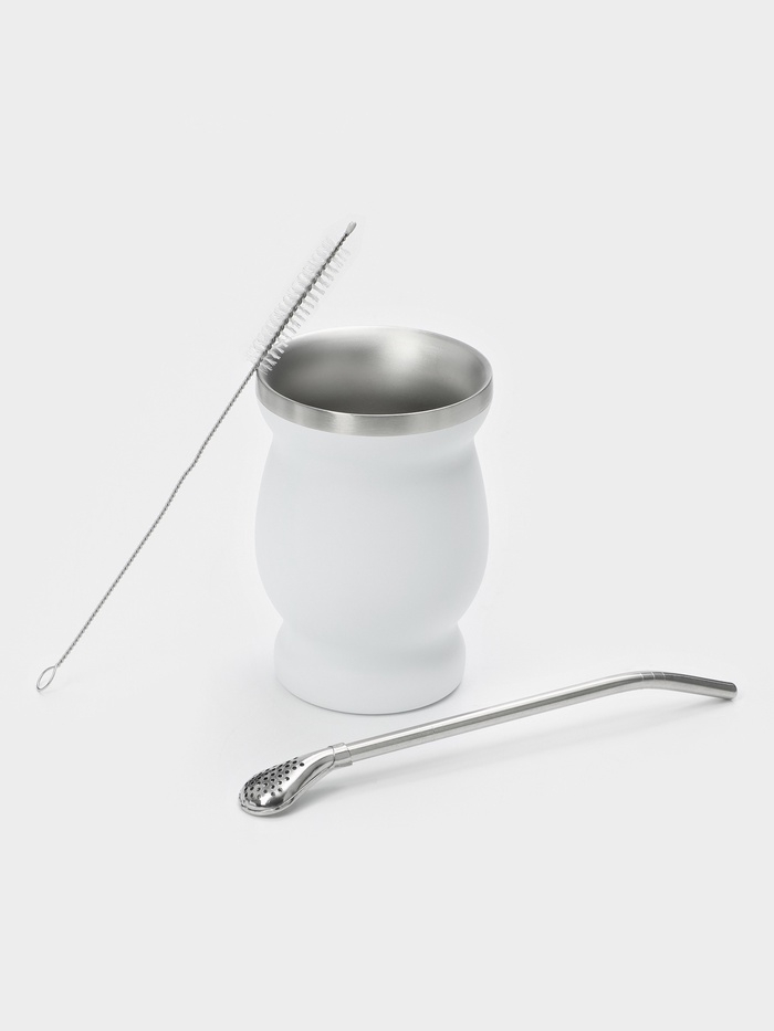 Калабас для чая Мате 240 мл и бомбилья с щеткой для чистки, набор для приготовления, белый 1078512