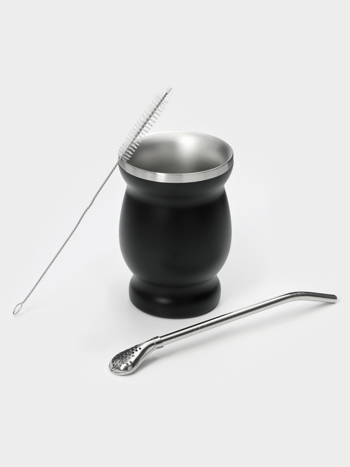 Калабас для чая Мате 240 мл и бомбилья с щеткой для чистки, набор для приготовления, черный 107851