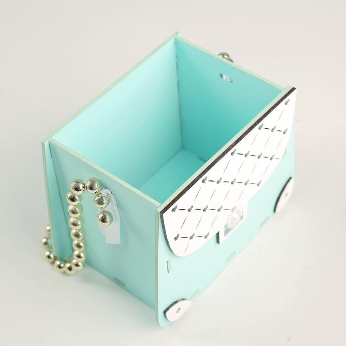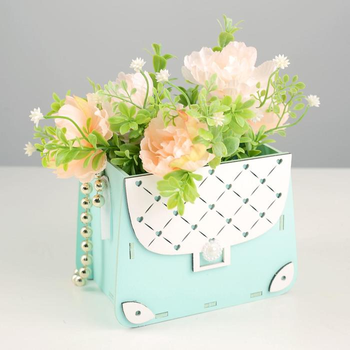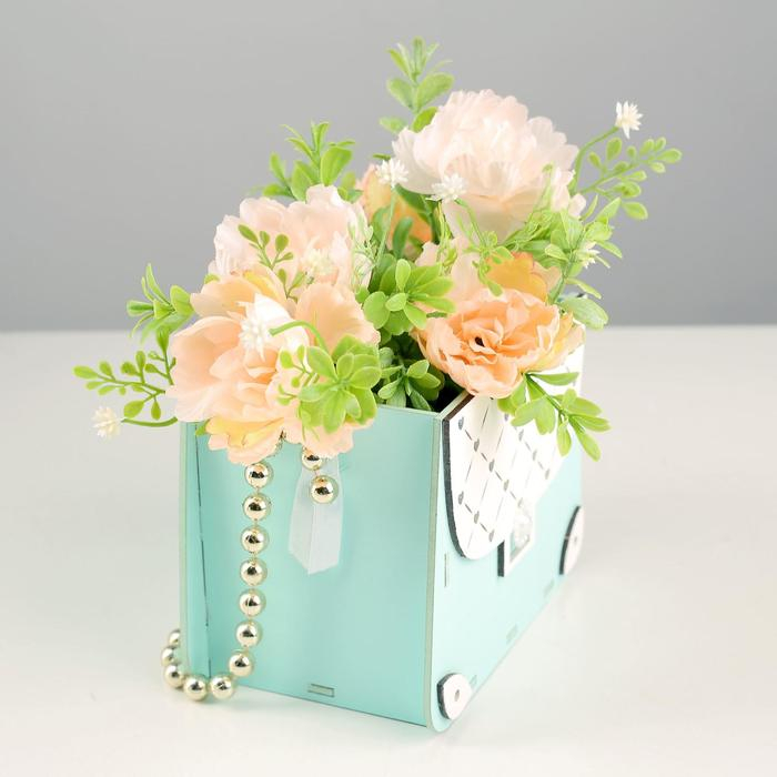 Кашпо деревянное 15,5х10х12 см "Сумочка", тиффани пастель-белый