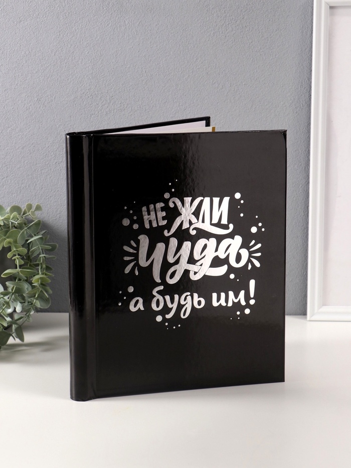 Фотоальбом магнитный 20 листов "Не жди чуда, а будь им!" чёрный тиснение серебро 29х24х2 см 106650