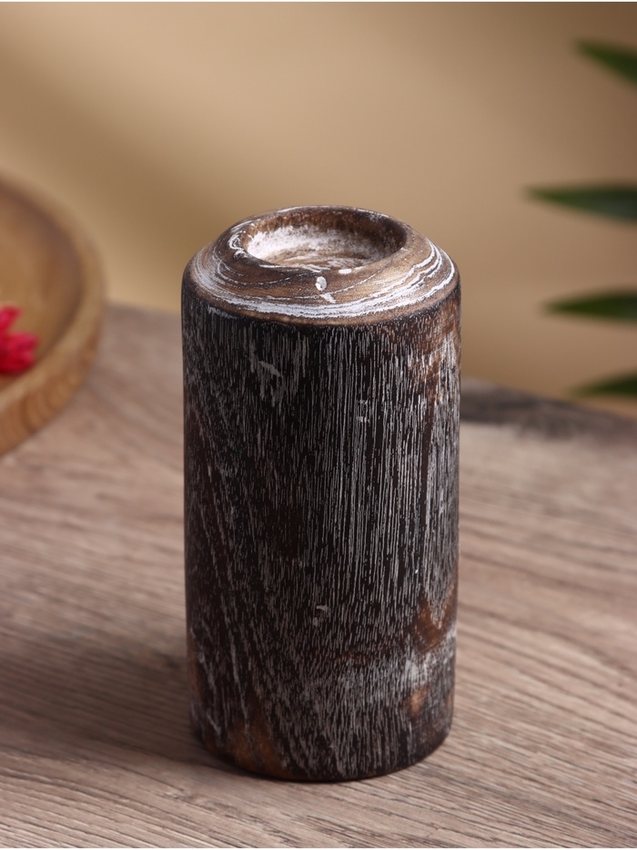 Подсвечник из дерева Джати, d 3 см, 8х8х20 см, цв. темно-коричневый