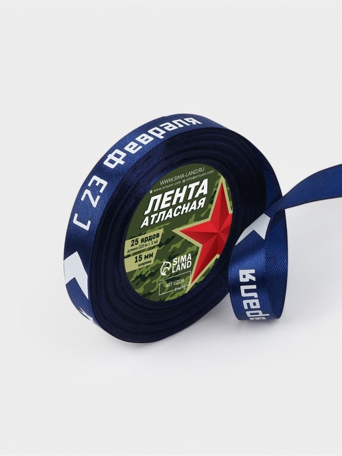 Лента атласная 15мм*25±1ярд(23м±1м) С 23 Февраля стрелы синий №120 АУ