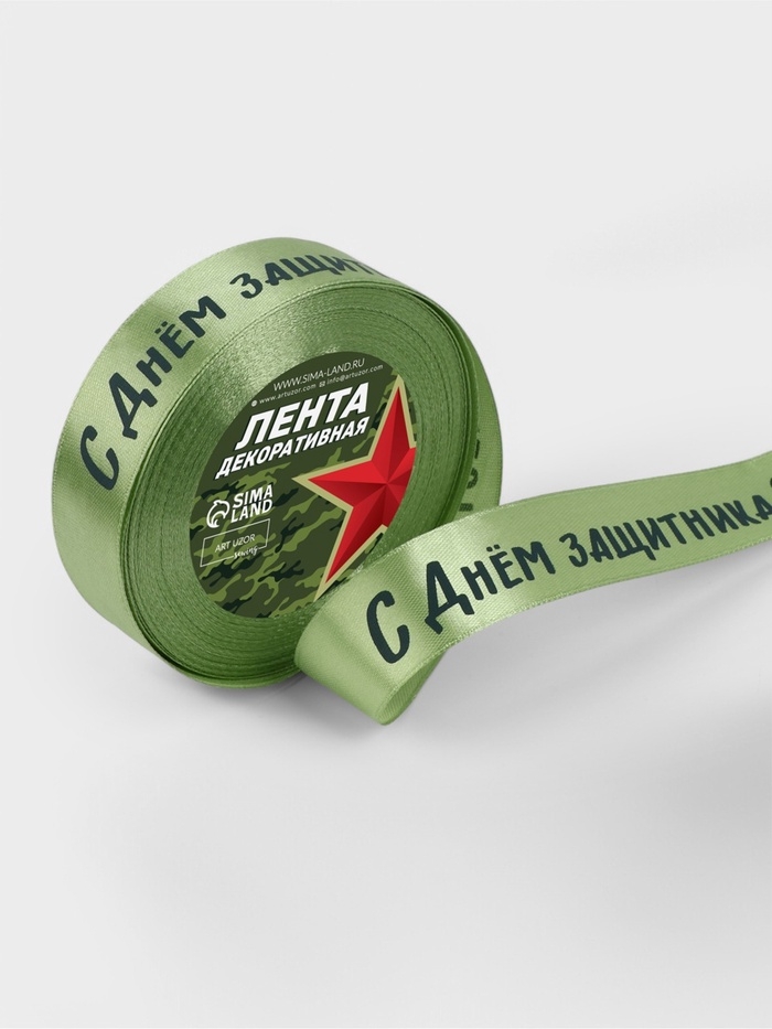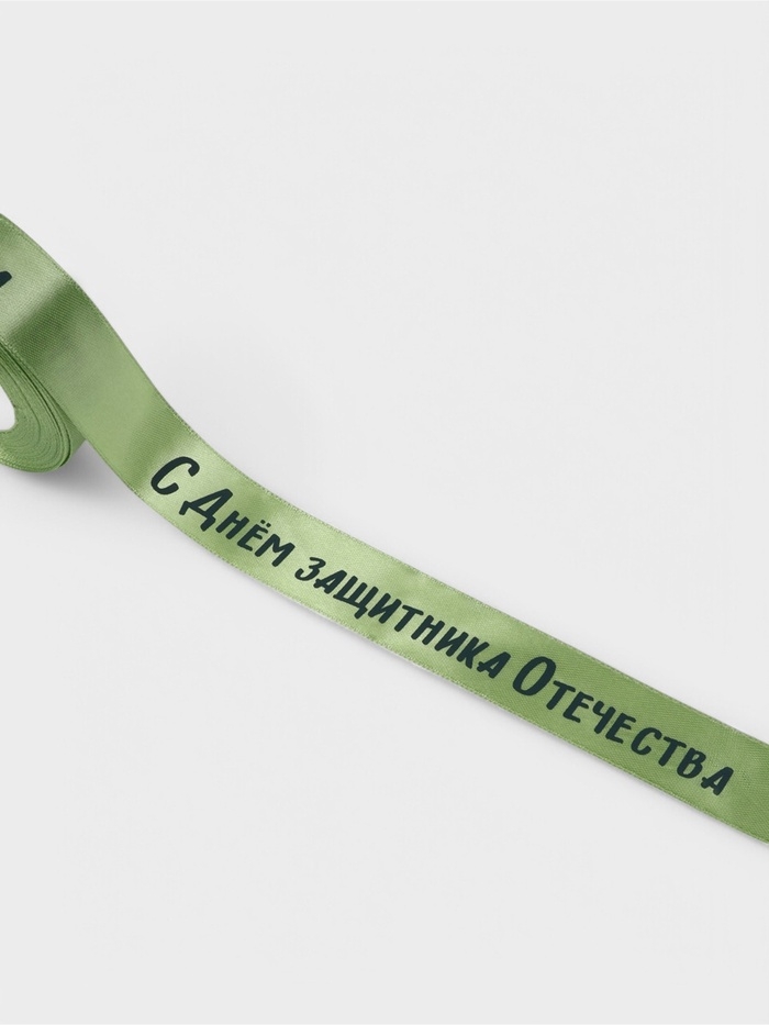 Лента атласная 25мм*25±1ярд(23м±1м) С Днем защитника Отечества зелёный №136 АУ