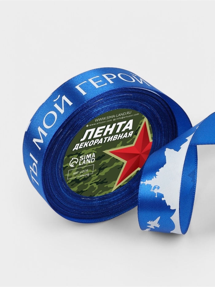 Лента атласная 25мм*25±1ярд(23м±1м) Ты мой герой синий №40 АУ