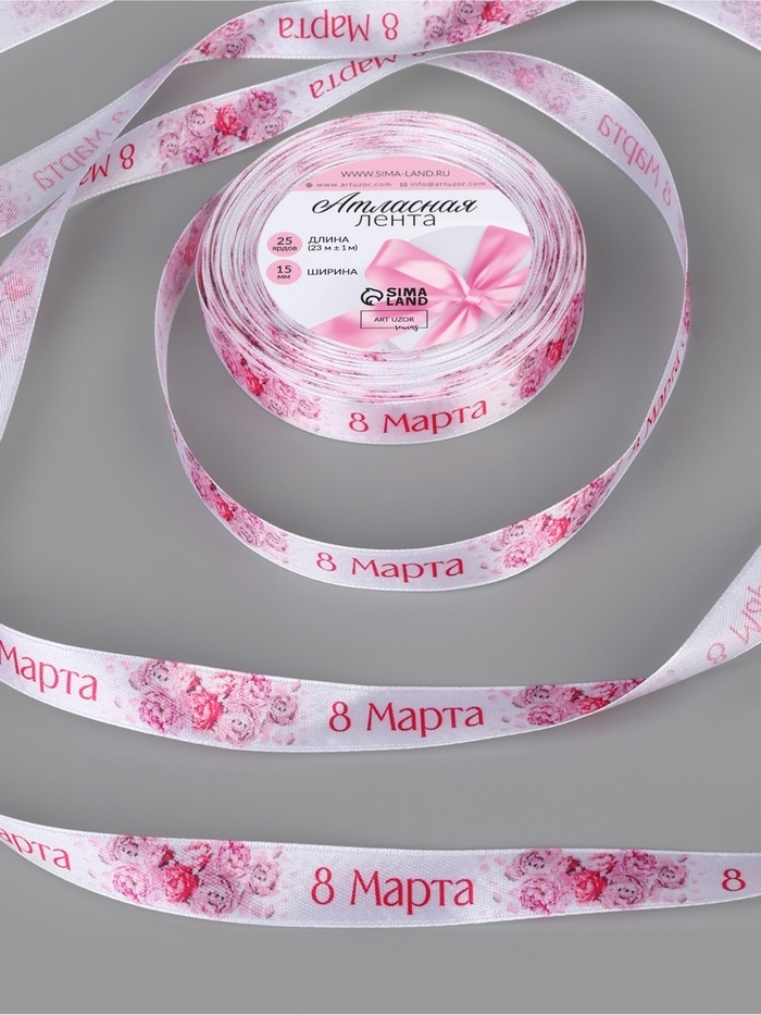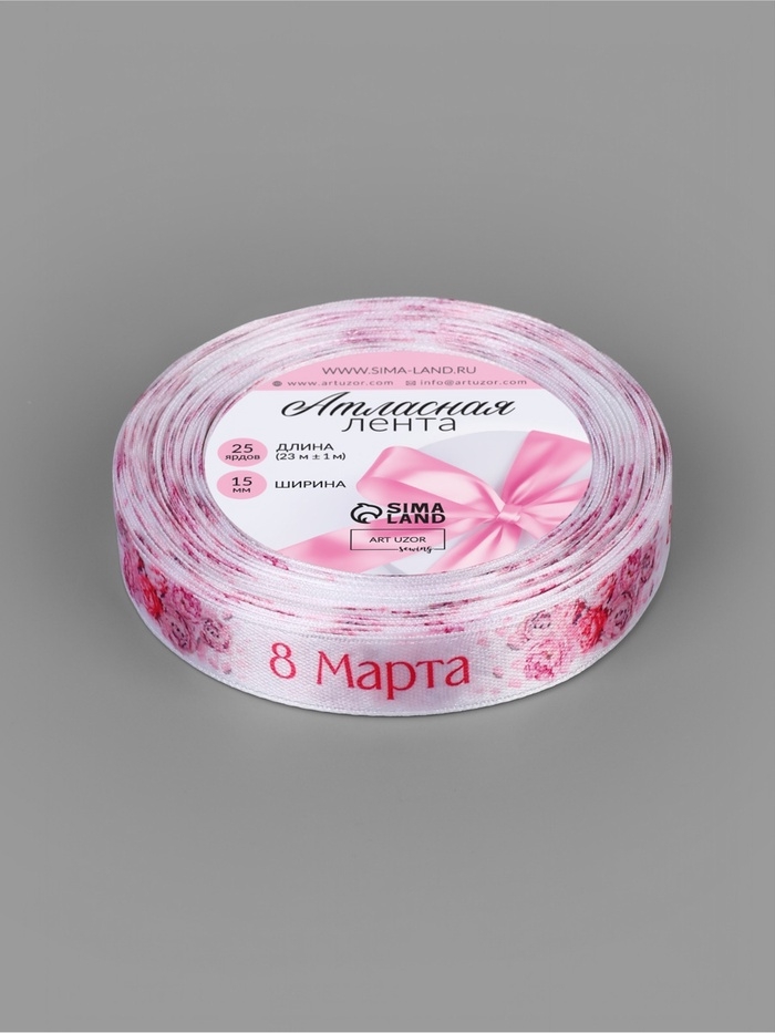 Лента атласная 15мм*25±1ярд(23м±1м) 8 марта и пионы АУ