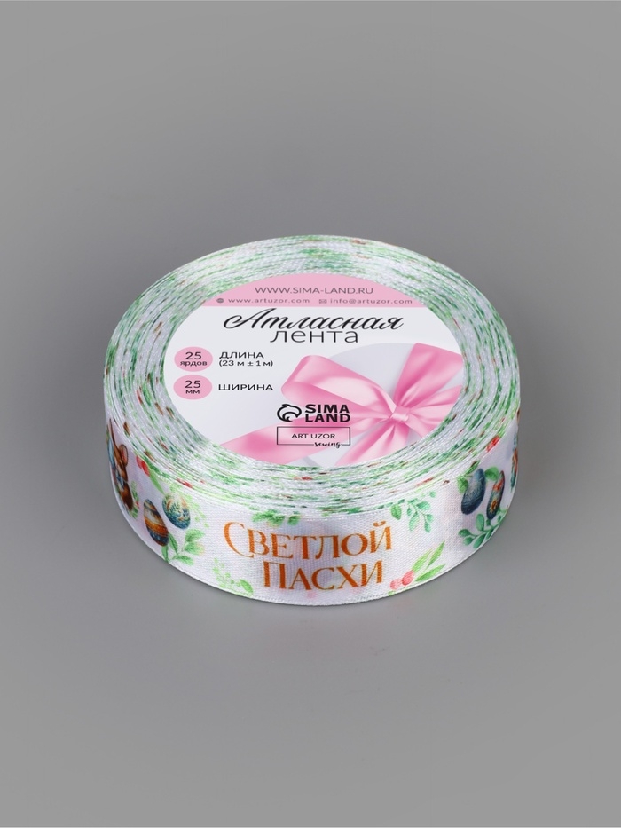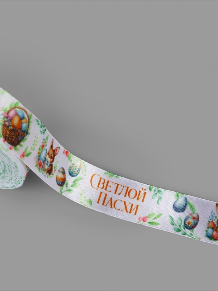 Лента атласная 25мм*25±1ярд(23м±1м) Светлой пасхи и зайчики АУ