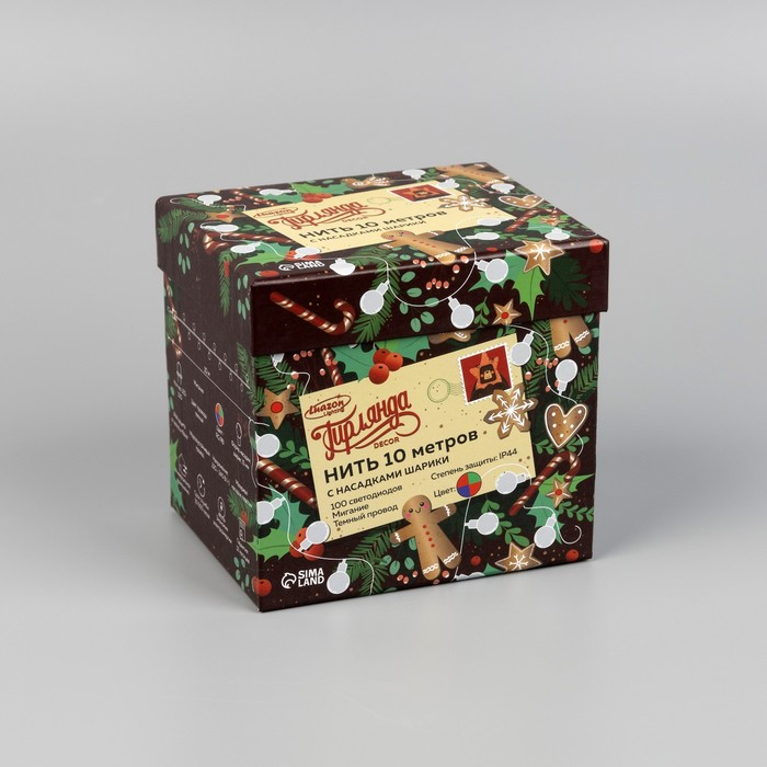 Гирлянда «Нить» 10 м с насадками «Шарики 1.5 см», IP44, тёмная нить, 100 LED, свечение мульти (RG/RB), мигание, 220 В