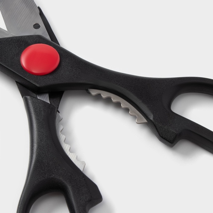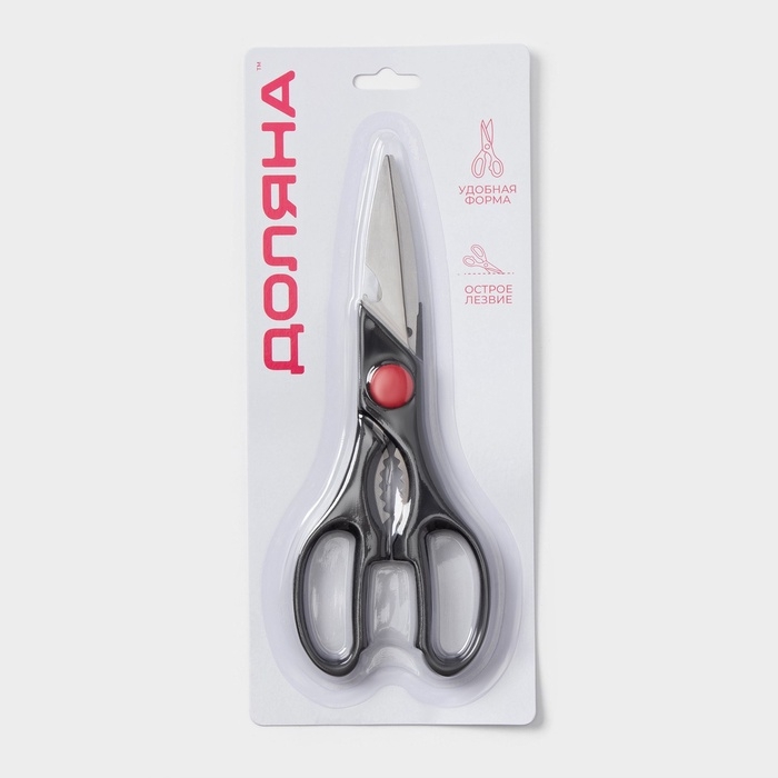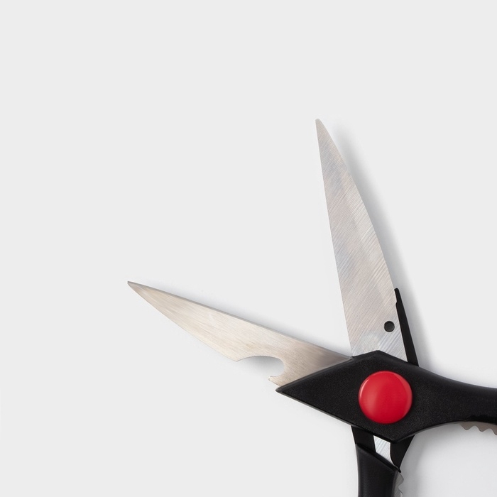 Ножницы кухонные Доляна «Помощник», 20 см, с открывалкой для бутылки, цвет чёрный