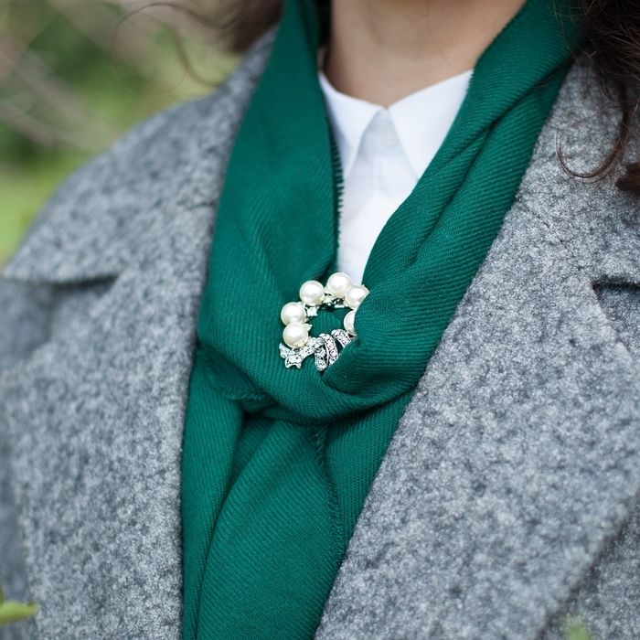 С помощью зажима вы можете каждый день экспериментировать с образом, завязывая любимый платок по-разному. Проявите фантазию и уложите модный аксессуар за несколько лёгких движений. Также это украшение порадует и любительниц уютных палантинов и ярких шарфиков.
