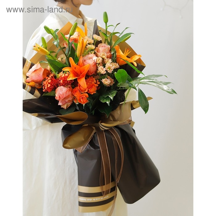 Пленка для цветов "Пленка с золотом", цвет коричневый, 58 см х 5 м