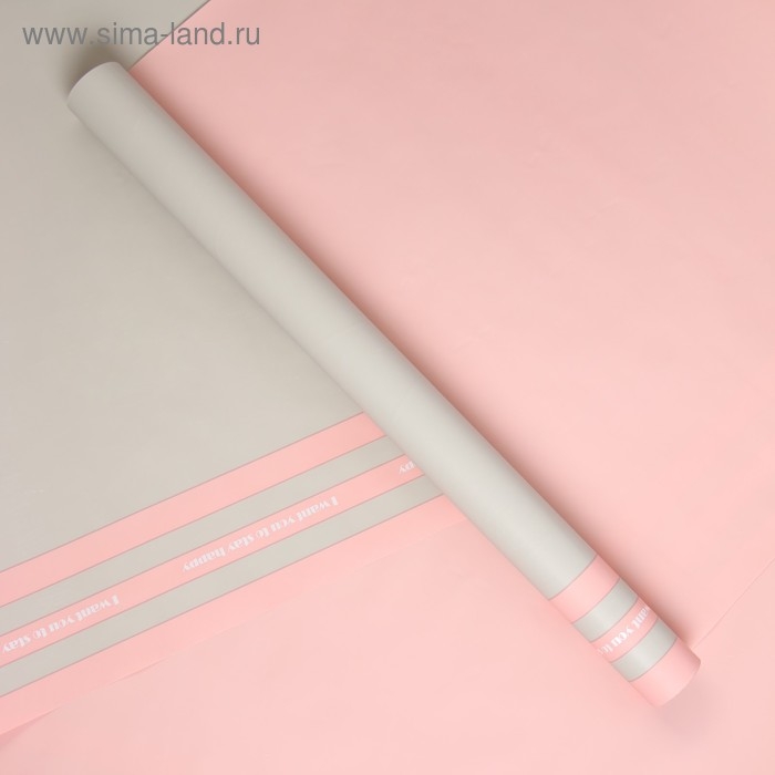 Пленка матовая для цветов "Бостон", серый - розовый, 57 см х 5 м