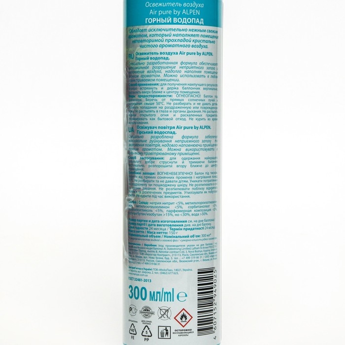 Освежитель воздуха Alpen, Горный водопад, 300 мл
