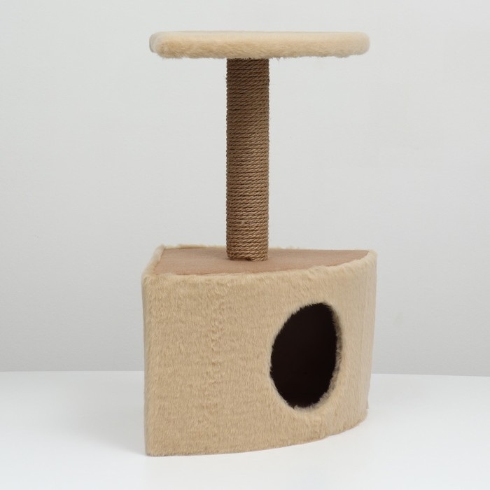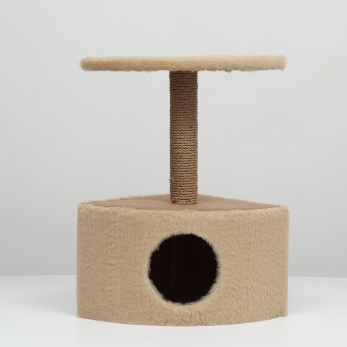Домик для животных угловой, джут, 35 х 35 х 64 см, бежевый