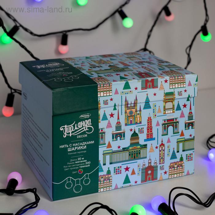 Гирлянда «Нить» 20 м с насадками «Шарики 1.5 см», IP44, тёмная нить, 200 LED, свечение мульти (RG/RB), мигание, 220 В
