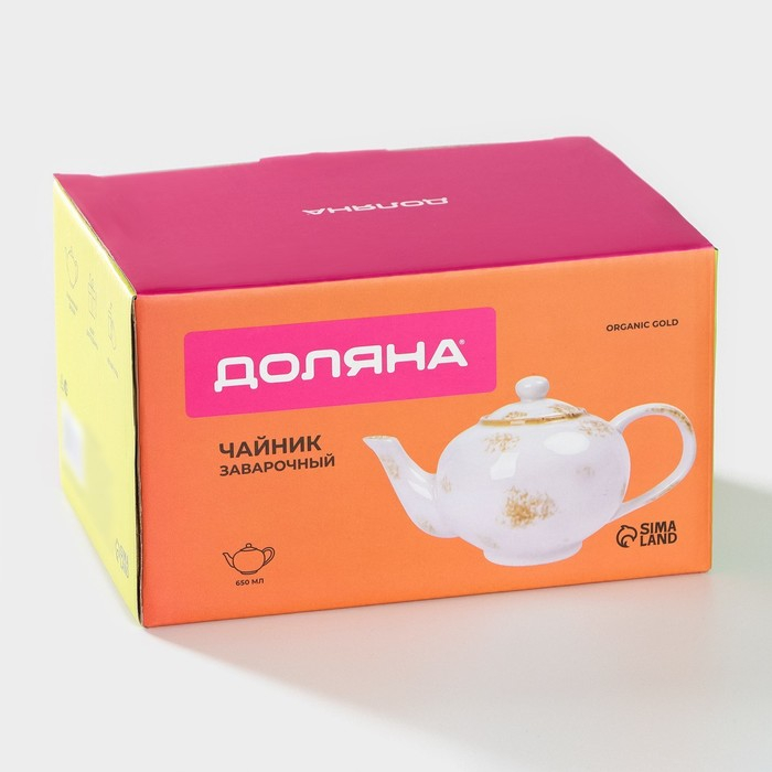 Чайник фарфоровый заварочный Доляна Organic Gold, 650 мл, цвет белый