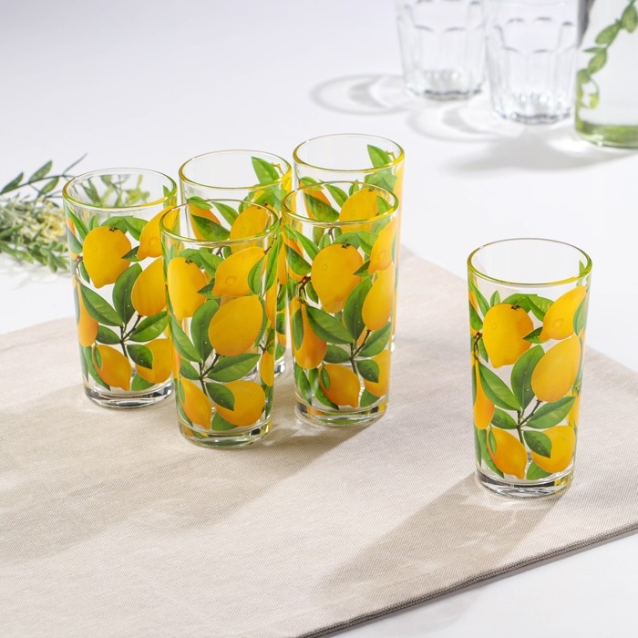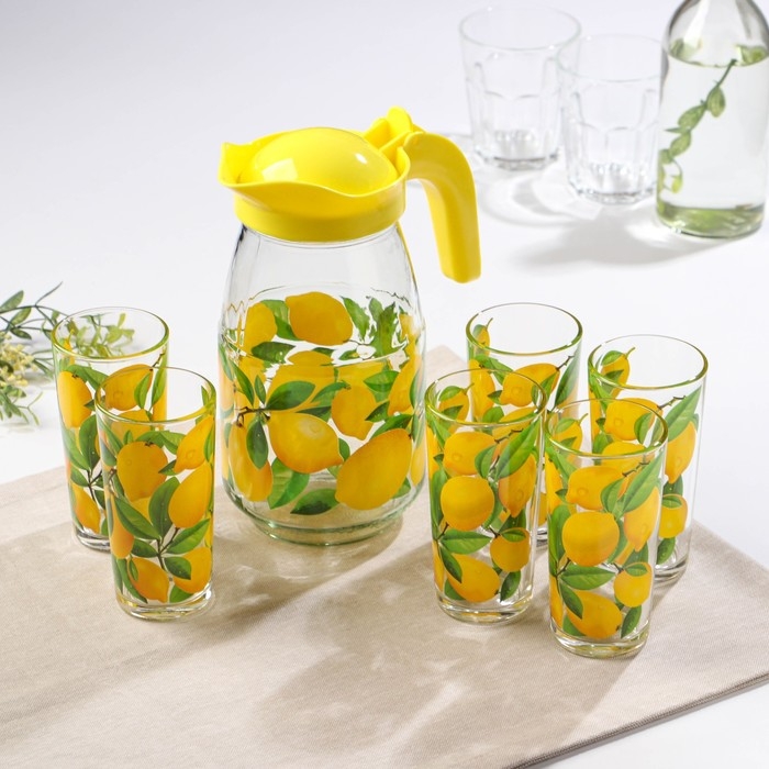 Набор питьевой «Лимон», стеклянный, кувшин+6 стаканов, 1500/230 мл
