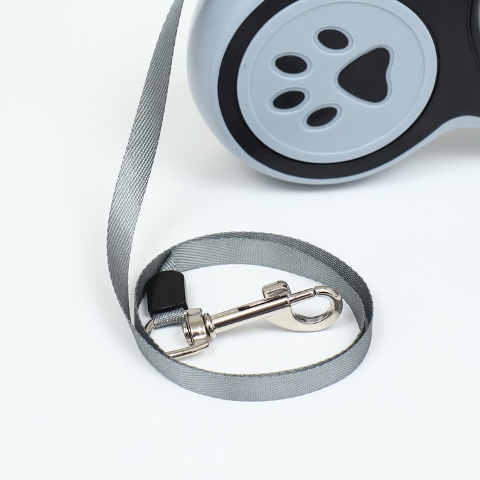 Рулетка имеет длину 5 метров и выдерживает нагрузку до 15 кг, что позволяет использовать ее для большинства пород собак и кошек.