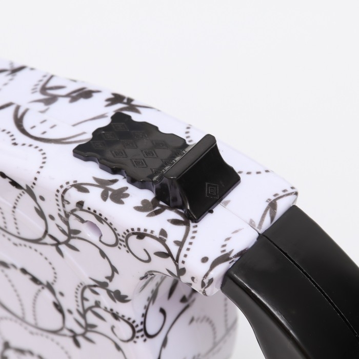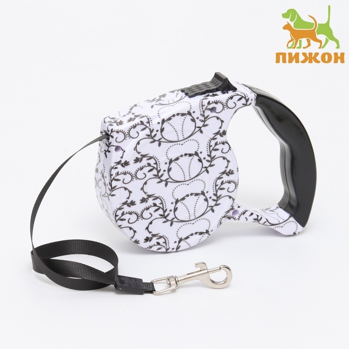 Рулетка с поводком-лентой, резиновая ручка, 5 м, вес животного до 15 кг, белая с орнаментом