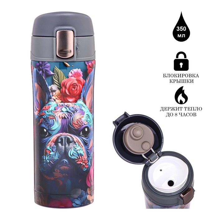 Термокружка, 350 мл, Style "Мопс", сохраняет тепло до 8 ч