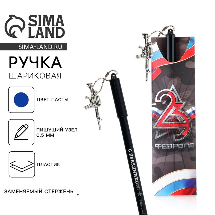 Ручка шариковая синяя паста 0.5 мм с подвеской автомат «23 февраля» пластик